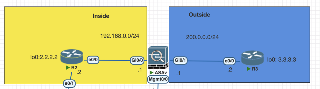 3. All traffic sourced from 2.2.2.2/32 to any destination on the outside must be translated using the range 200.0.0.70 to 200.0.0.75. This rule should not be configured globally.