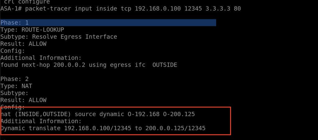 packet-tracer input inside tcp 192.168.0.100 12345 3.3.3.3 80