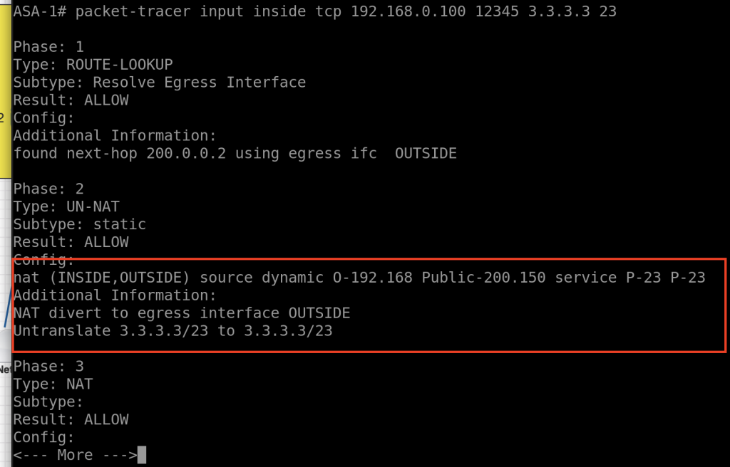 packet-tracer input inside tcp 192.168.0.100 12345 3.3.3.3 23