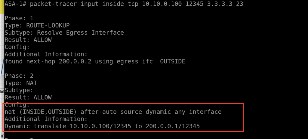 packet-tracer input inside tcp 10.10.0.100 12345 3.3.3.3 23