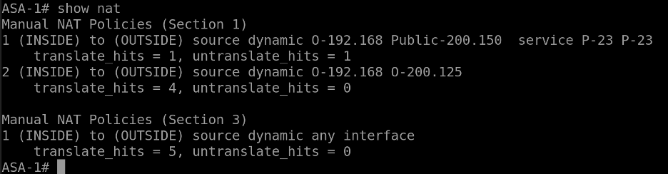 nat (INSIDE,OUTSIDE) 1 source dynamic O-192.168 Public-200.150 service P-23 P-23