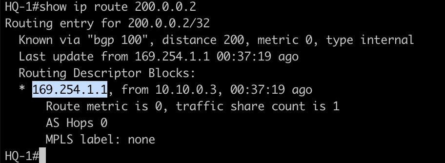 set ip next-hop 169.254.1.1