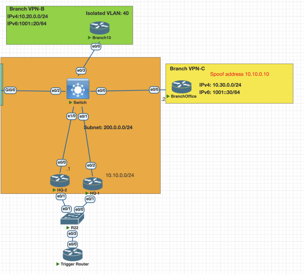 - The attacker for this is Branch B with ip address 200.0.0.2.