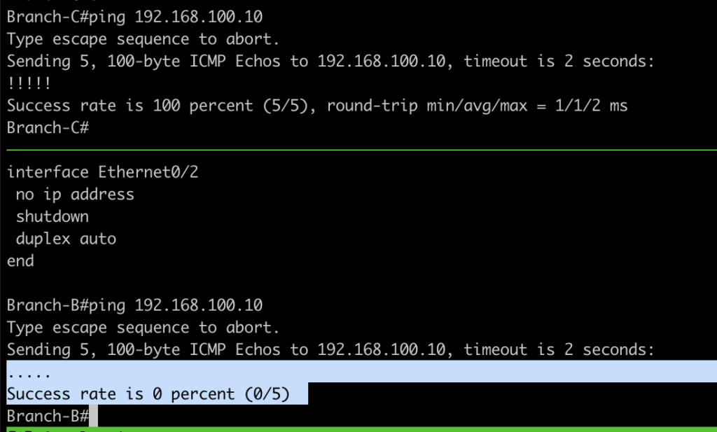 4. Testing connection from Branch B and Branch